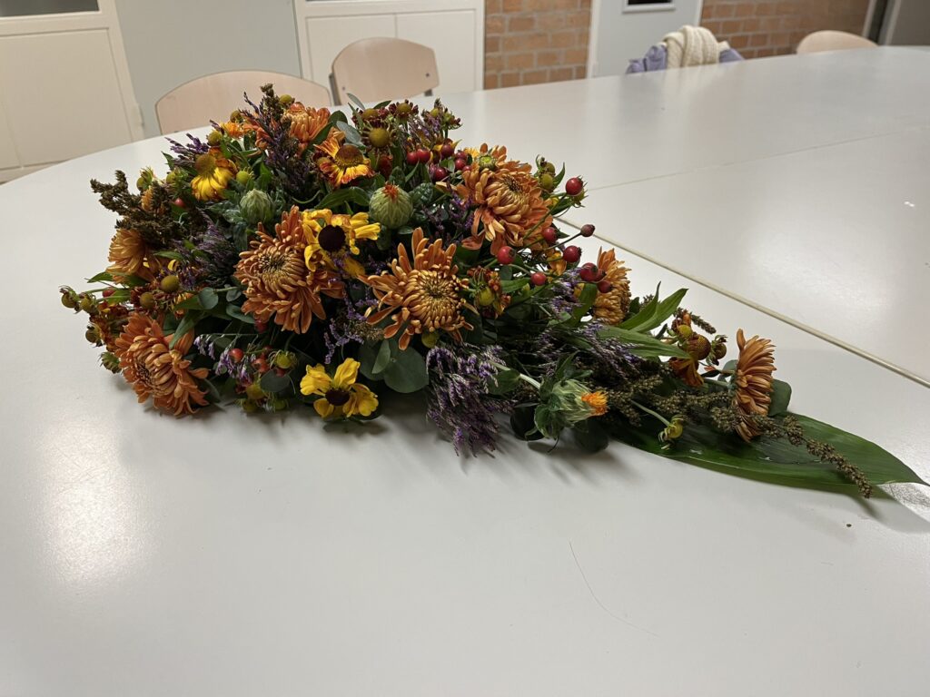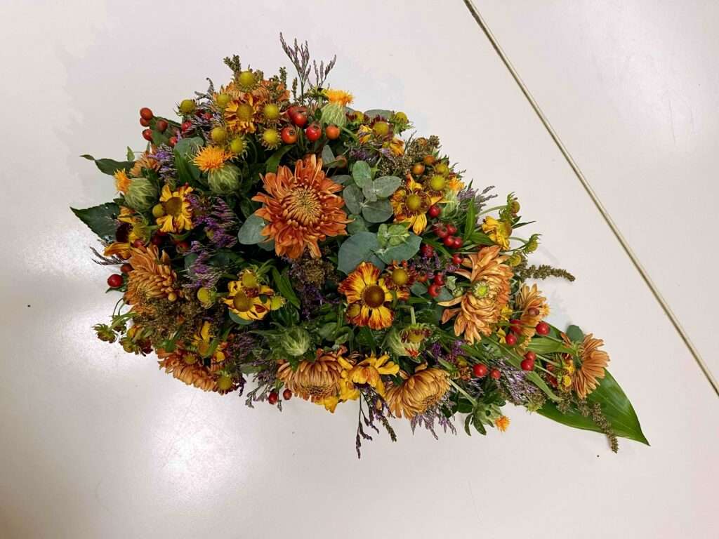Afscheidsbloemen in een druppelvorm.